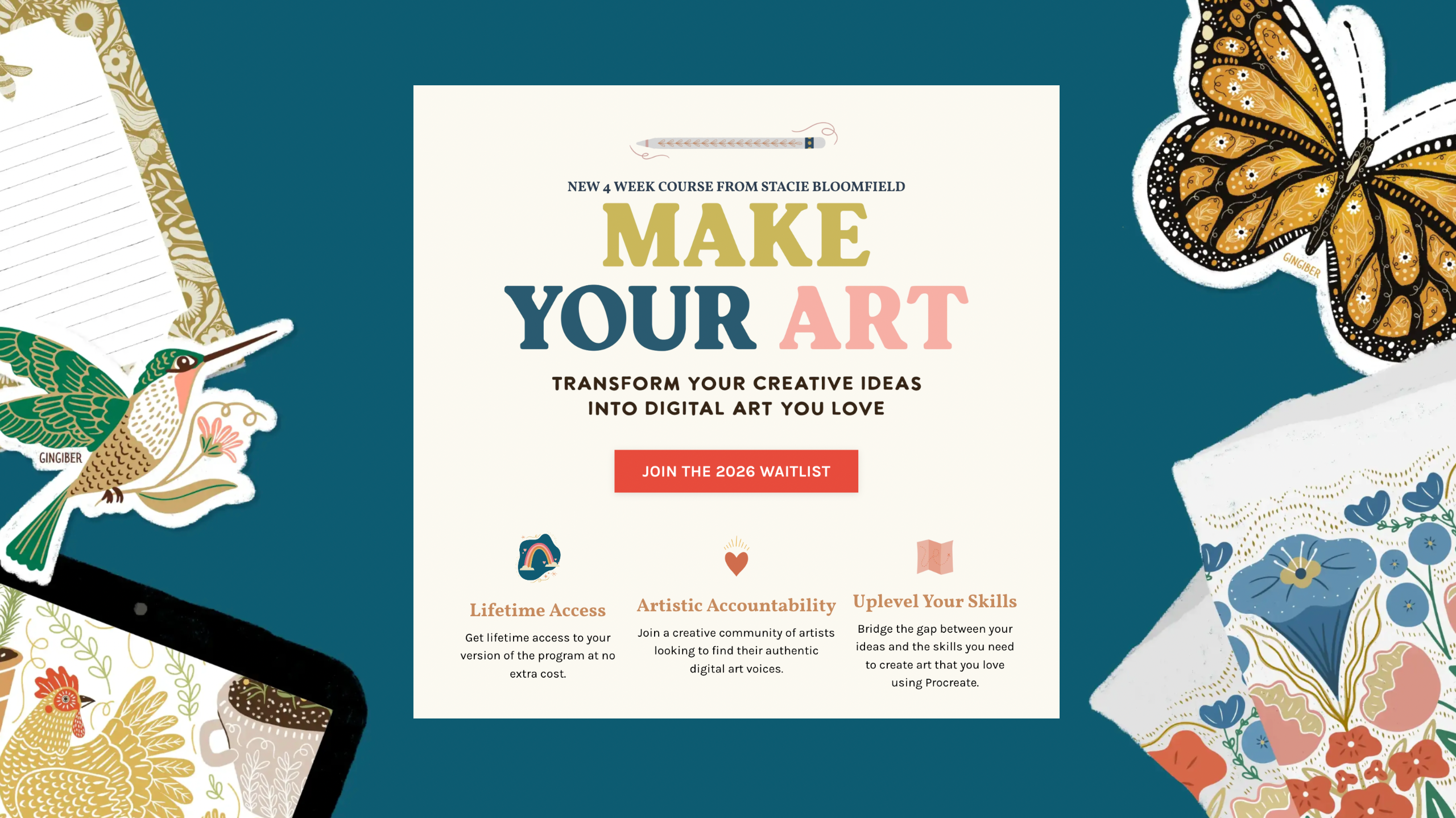 That's exactly what Make Your Art teaches. It's designed for traditional artists who are ready to draw digitally — people who already know how to make art but need a trusted, structured path to doing it in Procreate. By the end you'll have a recognizable digital style that actually feels like yours.